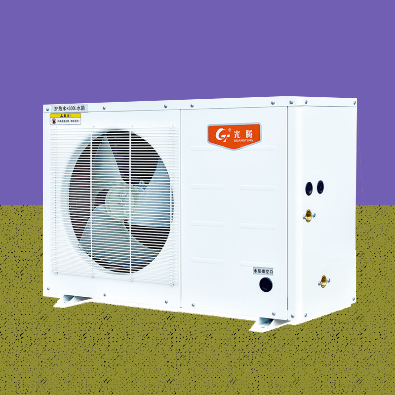 ◆ 熱泵主機內置屏蔽式循環水泵和雙高效換熱器,熱泵主機和水箱連接水管即可,安裝簡便。